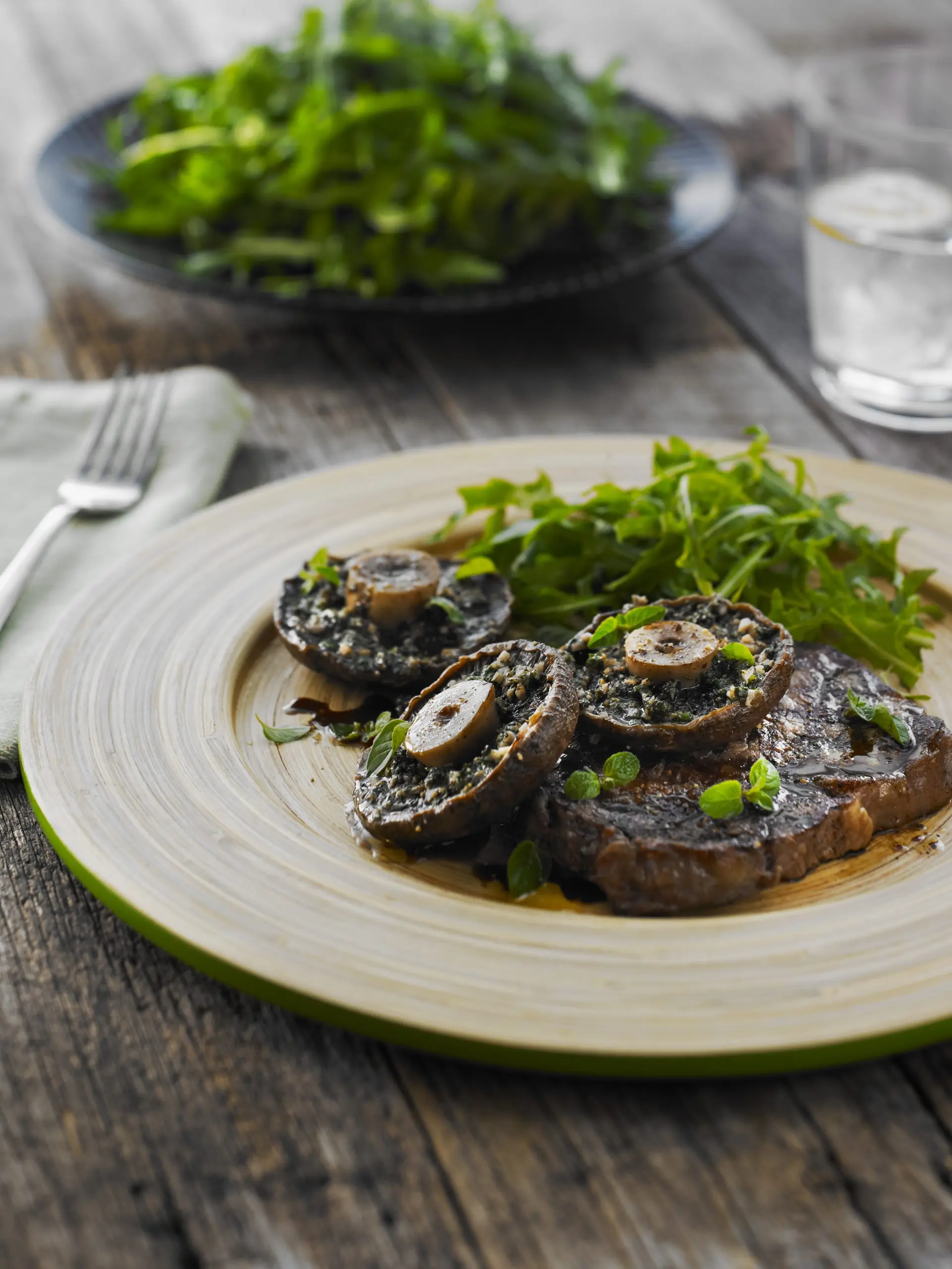 Serve steaks topped with mushrooms, drizzle with a little Moro Balsamic Vinegar and garnish with extra oregano leaves.