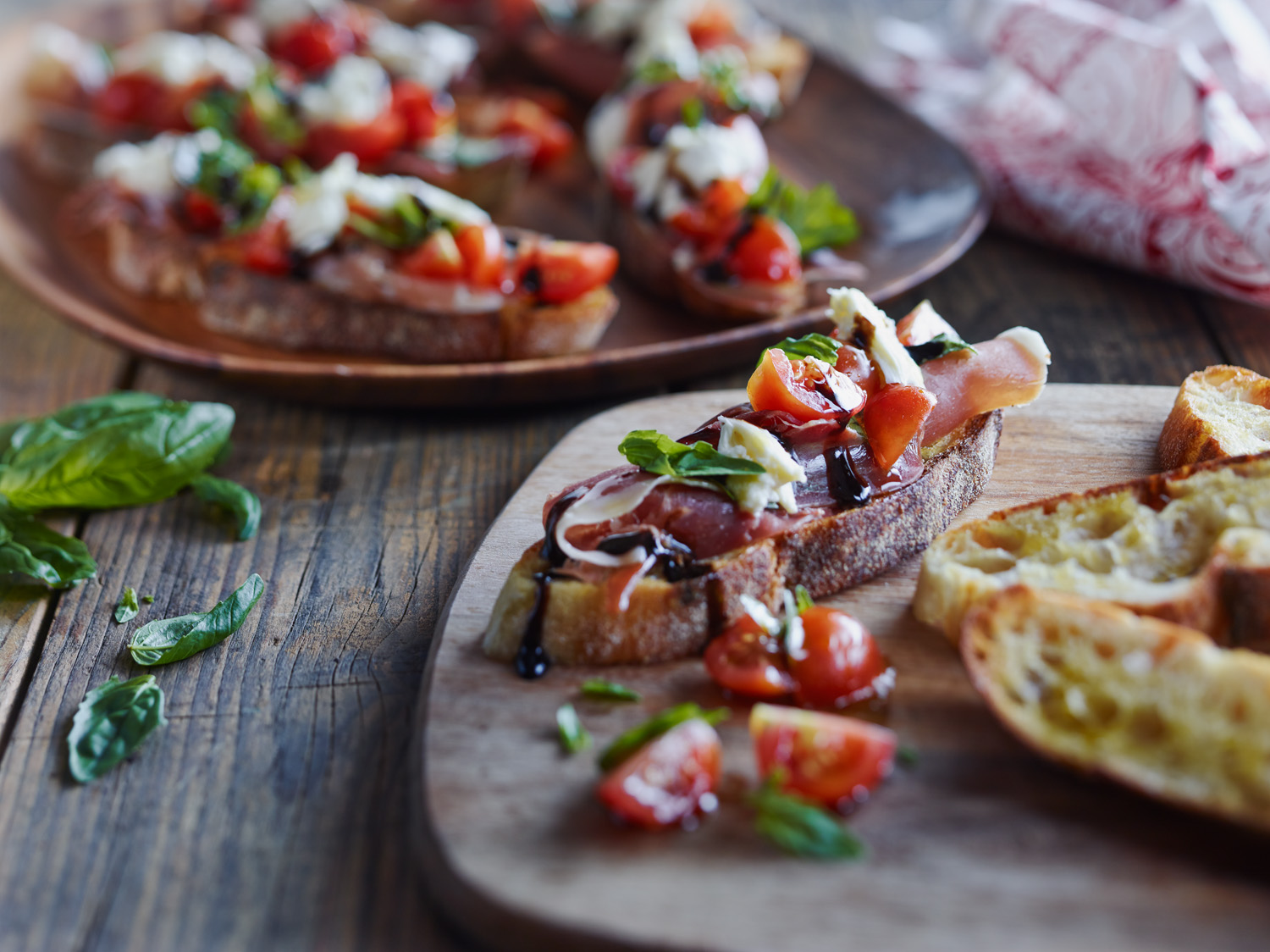 Top bruschetta with prosciutto, tomatoes and torn mozzarella and drizzle generously with Moro Gourmet Italian Glaze.