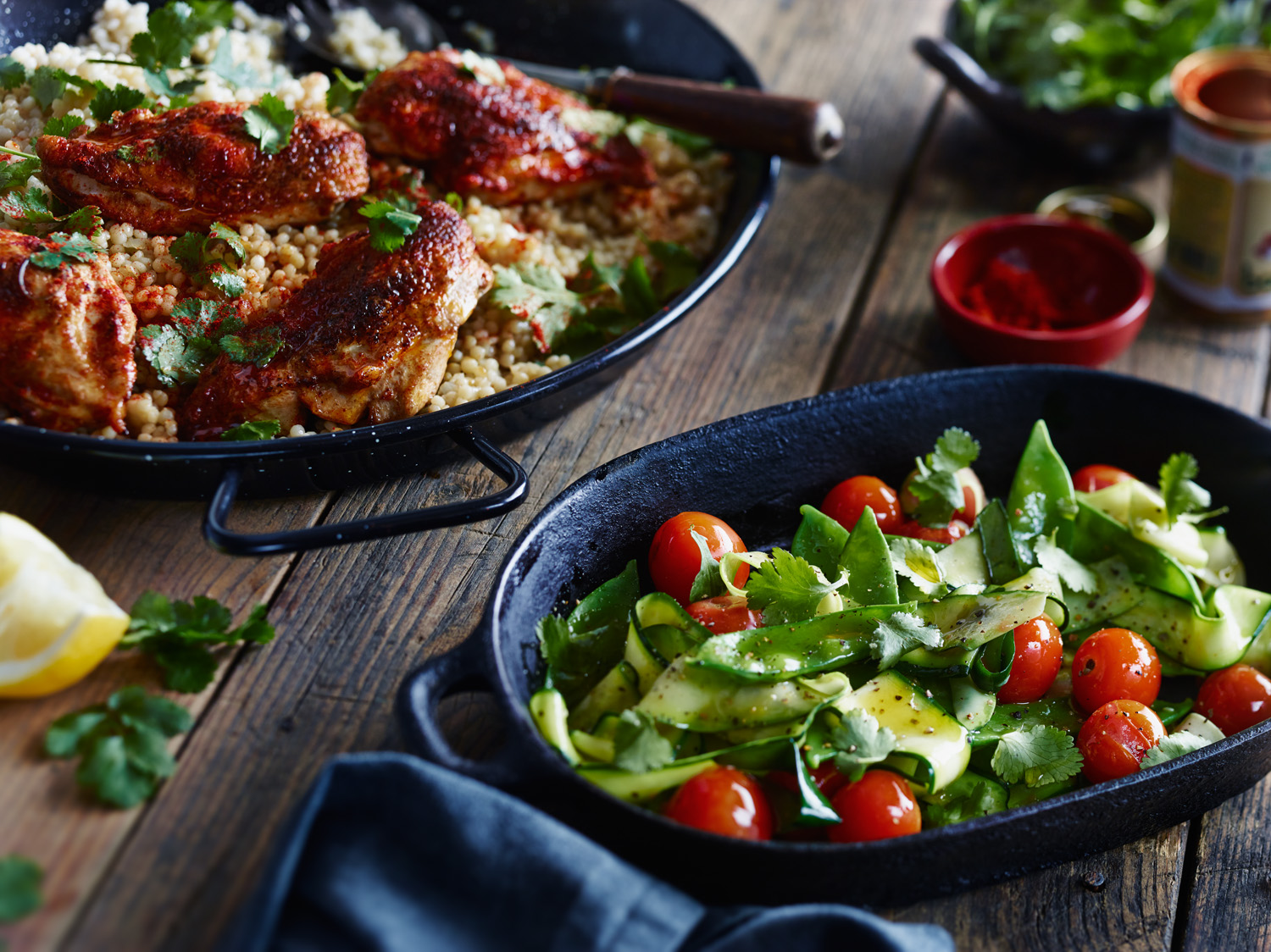 Serve chicken on a bed of couscous sprinkled with remaining coriander and serve sautéed vegetables on the side.
